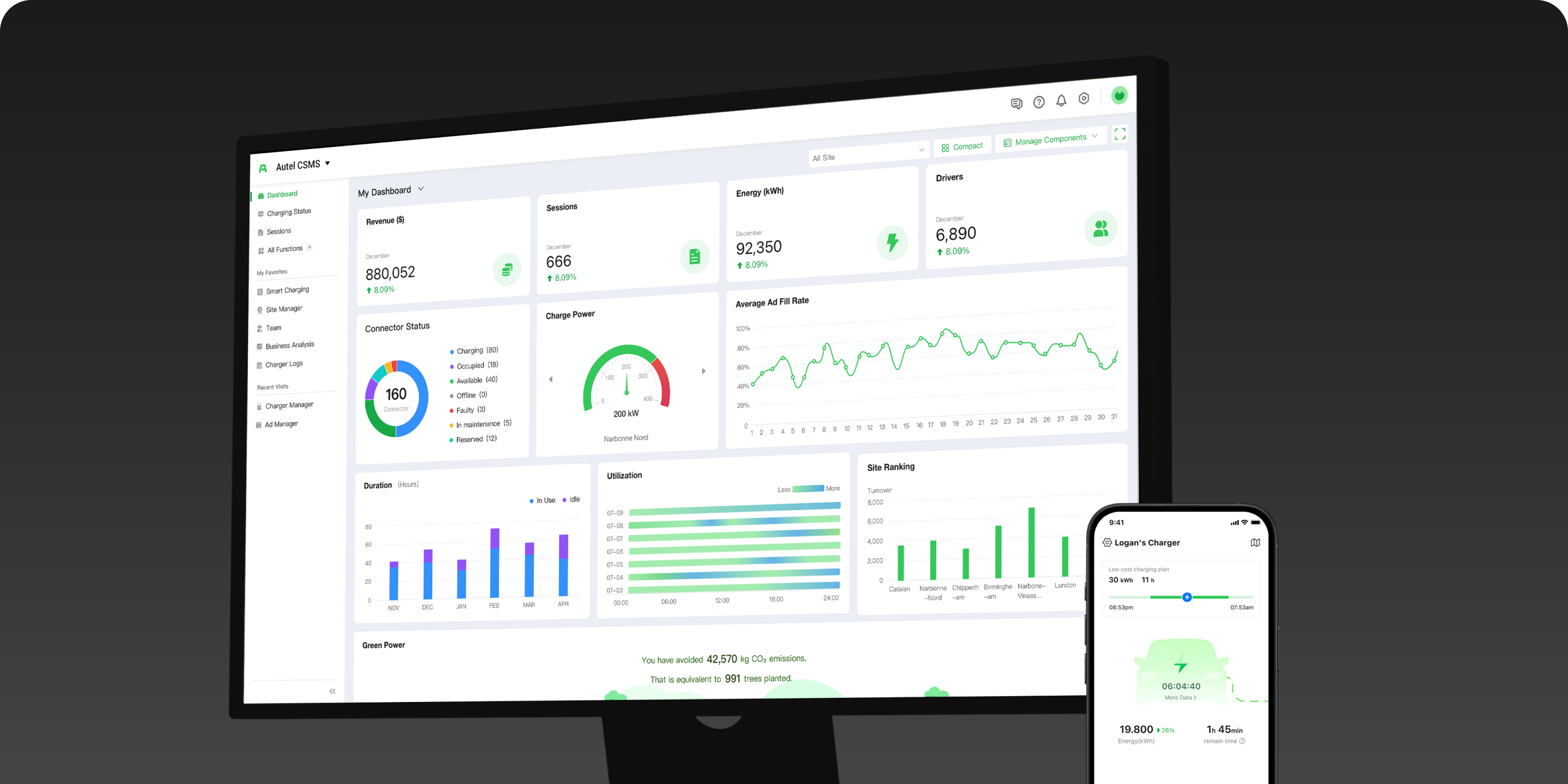 Autel offers one-stop intelligent charging network solution for business owners with enhanced reliability and ensure higher yields.